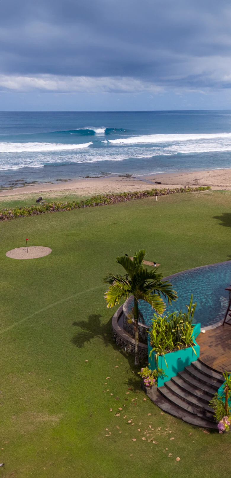 This is a Surf Trip. However, if you are looking for something on the side, there’s more to Mahi Mahi than just waves. On rest days you explore nearby waterfalls, hike lush jungle trails, or visit local villages for a glimpse into traditional Simeulue life. Wifi is available throughout the resort and the staff can also arrange fishing trips, snorkelling, island excursions, and wildlife tours. The open-air yoga studio is the perfect place for morning stretches or sunset sessions with daily guided classes free for all. The stand out features of the resort are a 9-hole pitch-and-putt golf course, a volleyball court, a cozy fire-pit for bonfires and of course the stunning infinty pool and pool table overlooking the waves.